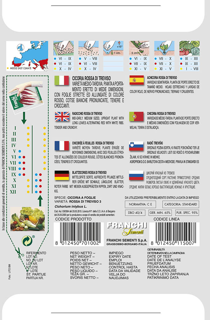stredne neskorá odroda, ktorá je so vzpriameným smerom rastu, s úzkymi, predĺženými, červenými listami s bielymi rebrami, typické jemnou chuťou a chrumkavosťou.