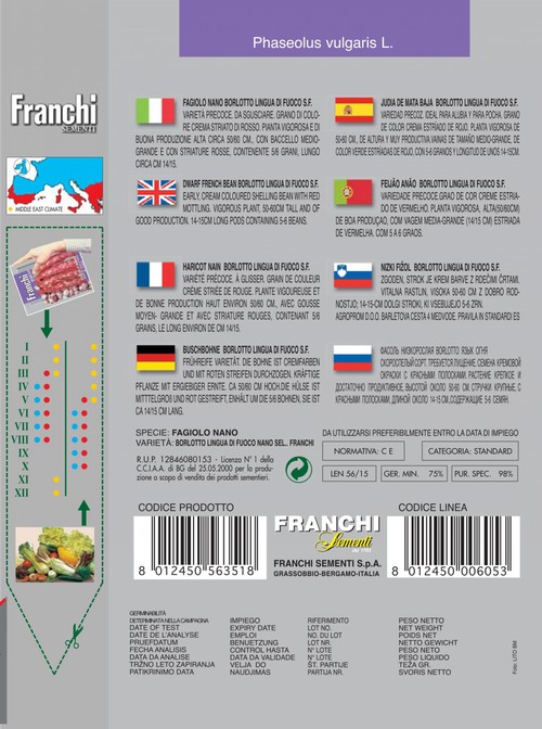 skorá odroda. Semená sú krémovej farby s červenými pruhmi. Rastlina je silná s dobrou produkciou, vysoká cca 50-60cm. Struky dorastajú až do 14-15 cm a obsahujú 5-6 veľkých fazúľ.