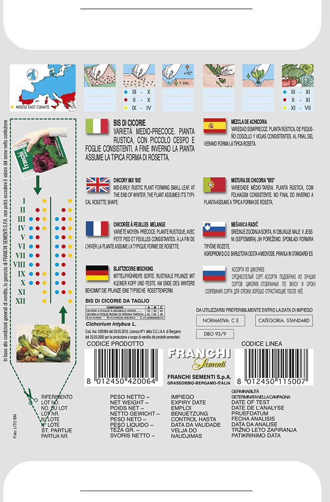 Stredne skorá odroda. Vytvára malé zelené a červené čakanky na rezanie. Na konci zimy rastlina zvyčajne nadobúda tvar ružice.